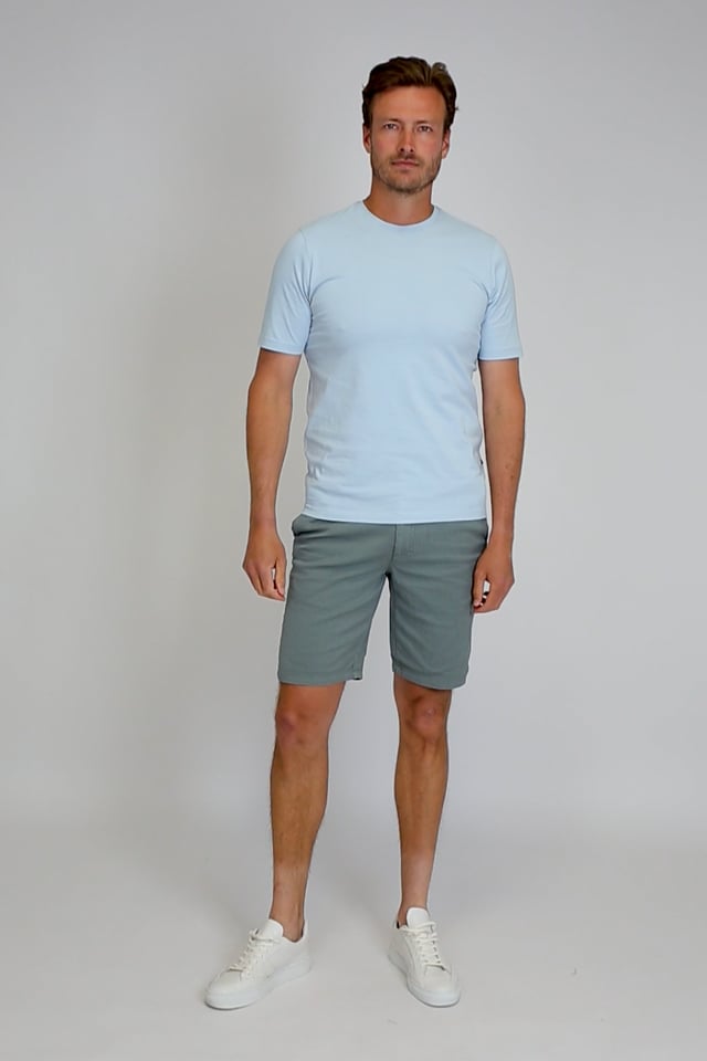 Suitable Ferdinand Short Steel Green Suitable Ferdinand Short Steel Green in the color Green with a fit Slim-Fit is made from Cotton and Stretch with a Plain design it comes from the Suitable Orange - Smart collection.Our model Stefan is 189 cm tall and wears size L